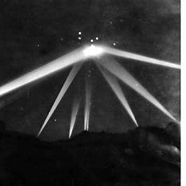 Photos later revealed they were heavily retouched to accentuate drama—searchlight beams widened with paint, contrast heightened for print—something newspapers commonly did at the time to make images more legible, though it added an almost cinematic quality to the night sky’s memory.