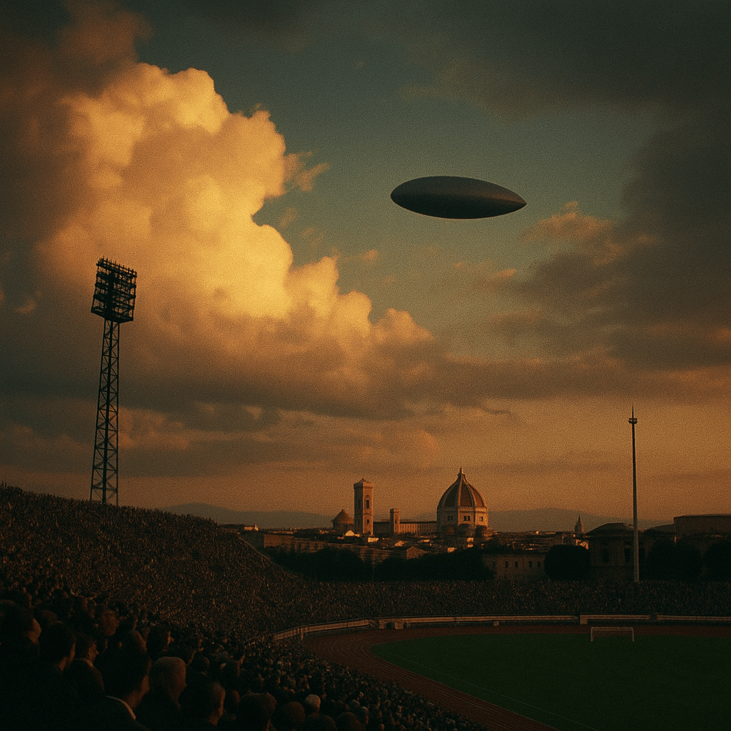 Florence, Italy — On the eve of its anniversary, the city of Florence is once again remembered for one of the most extraordinary and unexplained events of the 20th century. On October 27, 1954, a professional football match came to a standstill as thousands of spectators witnessed mysterious objects silently gliding above the stadium.