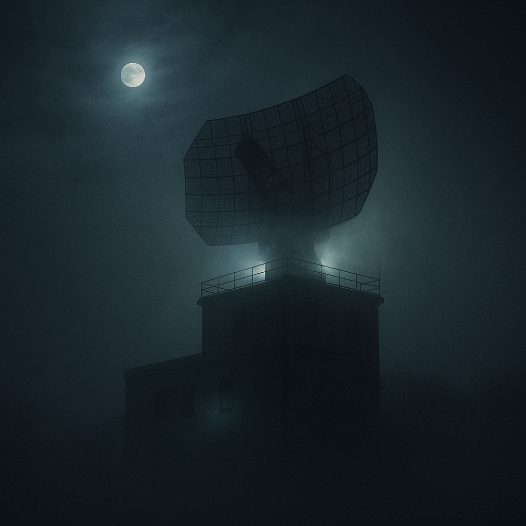 I stand by the chain-link fence, wind cutting through the silence, watching the radar tower cast its long shadow over the Atlantic. The air feels different here — thin, vibrating, as if stretched by something unseen.