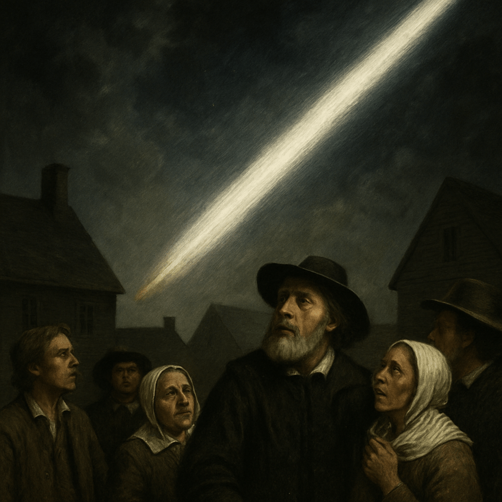 On a frigid March night in 1675, residents of the New Haven Colony reported witnessing what later became known as the Old Ribley Light—a blazing, silently moving beam cutting diagonally across the sky. Although the sighting occurred in March, it was during the November hearings of 1675 that magistrates formally collected sworn testimonies, preserving the incident in the colonial record. The event was chronicled by Puritan minister Increase Mather and several town recorders, who interpreted the spectacle as a sign of divine warning amid King Philip’s War.