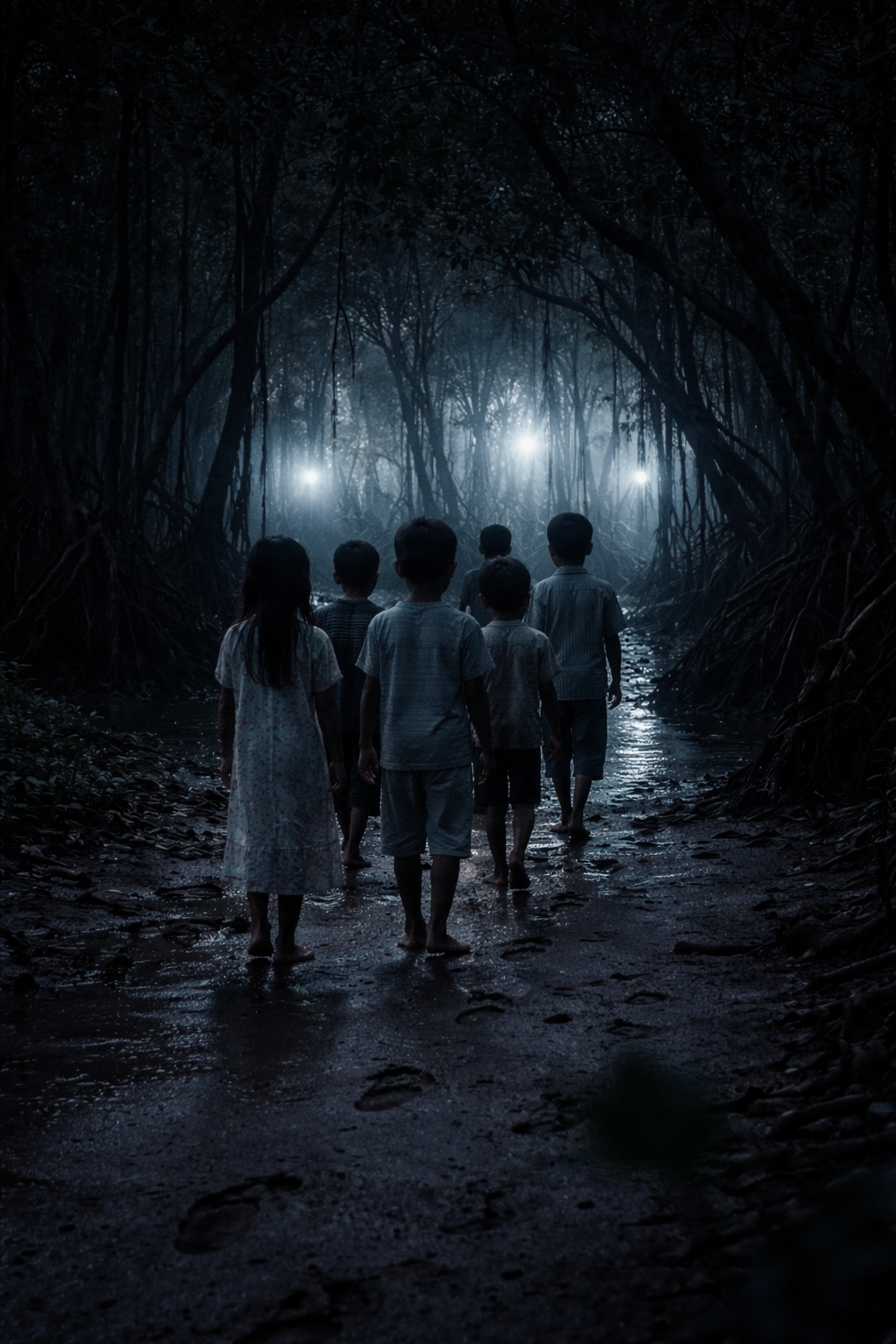 Just before midnight, an entire group of children left their beds and walked toward the mangrove edge in silence. No crying. No confusion. They walked in a straight line, like something was guiding them. When villagers intercepted them, the children would not speak. Some still refuse to talk. When asked what they heard, one child finally whispered: