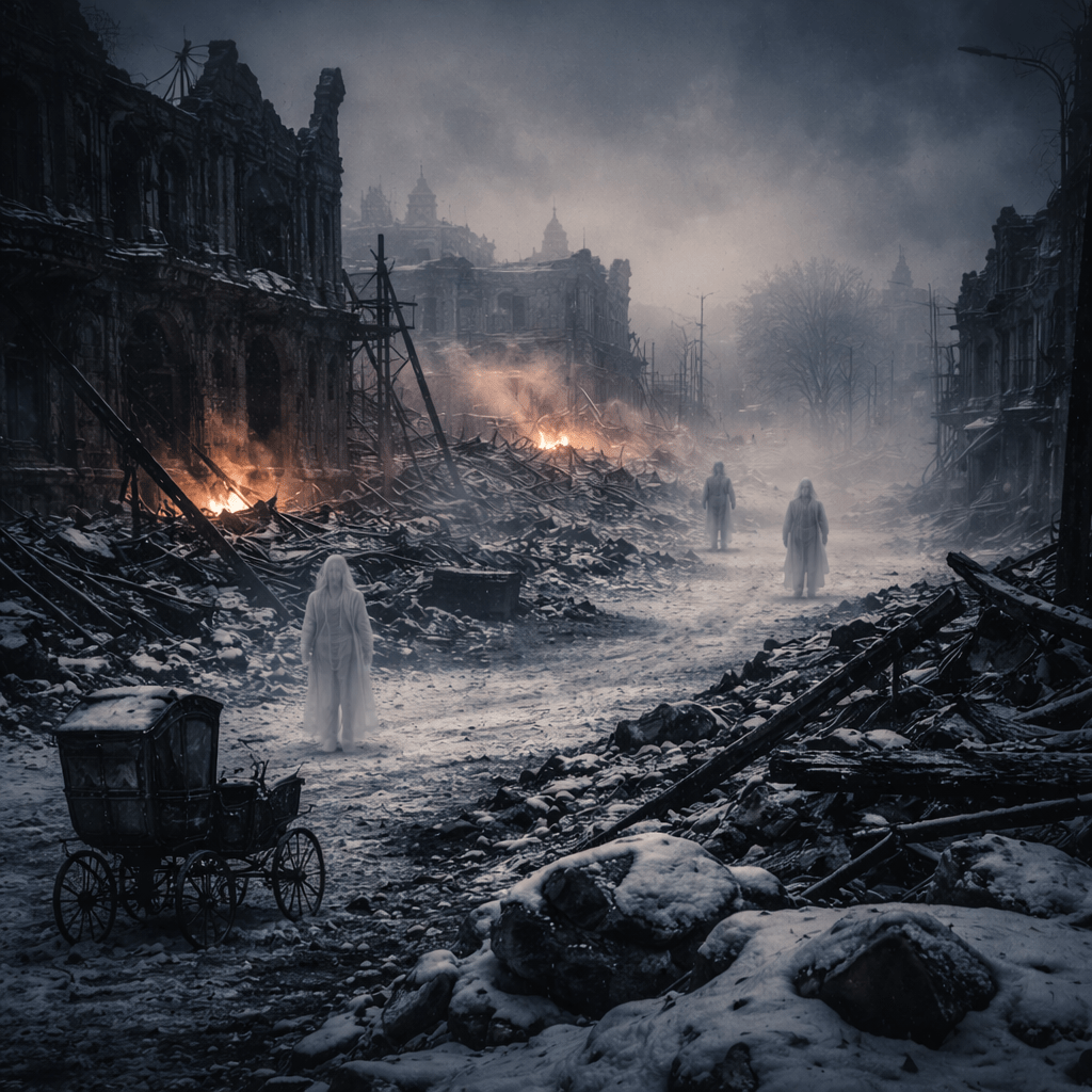 As relief workers and soldiers continued patrols into early January—including January 5—multiple witnesses described phenomena that could not be easily dismissed as shock alone. Reports included footsteps crunching through snow in abandoned districts, voices calling for help from collapsed buildings already searched and cleared, and shadowy figures seen standing in streets that no longer existed.
