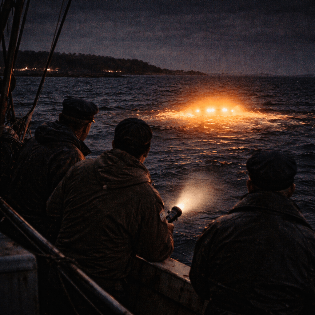 Fishermen and police along a quiet Canadian harbor watched a glowing object plunge into the ocean — and then float silently on the water.