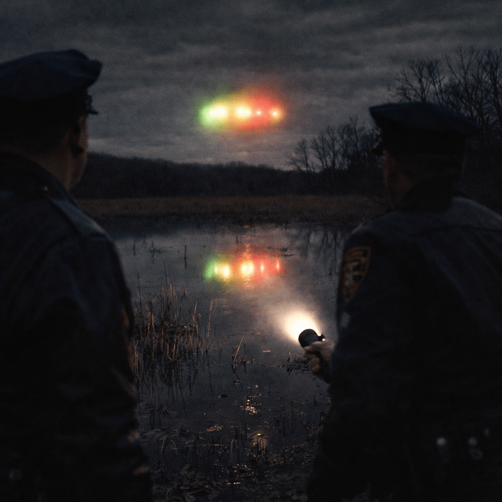 According to their statements, the light appeared as a dull orange or reddish glow hovering above the swamp, roughly 500 feet away. It moved slowly, then suddenly lifted and drifted away before disappearing into the darkness.
